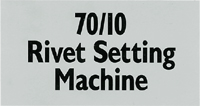 The 70/10 has been specifically designed for high volume, high quality applications that require small, light fasteners. It is used extensively in the electrical and electronics industries for the manufacture of P.C.B's, microswitches and sub-assemblies for motors. Flexible and Cost Effective applications. • Economical in operation. • Twin head machine is offered as a standard option. • Can be modified for use in special production modules: using customised fixtures and two handed safety trip. Ease of Operation comfort. • Automatic clutch reduces operator fatigue. • Increased operator comfort can be achieved with the use of a 'Highwood' guard which enables pneumatic trip to clutch via the remote foot pedal. • Modern, fully enclosed design reduces noise levels improving working conditions. • Minimal 'daylight' ensures complete operator safety while maintaining full accessibility to working area. Production Continuity • Well proven components designed to perform to the |